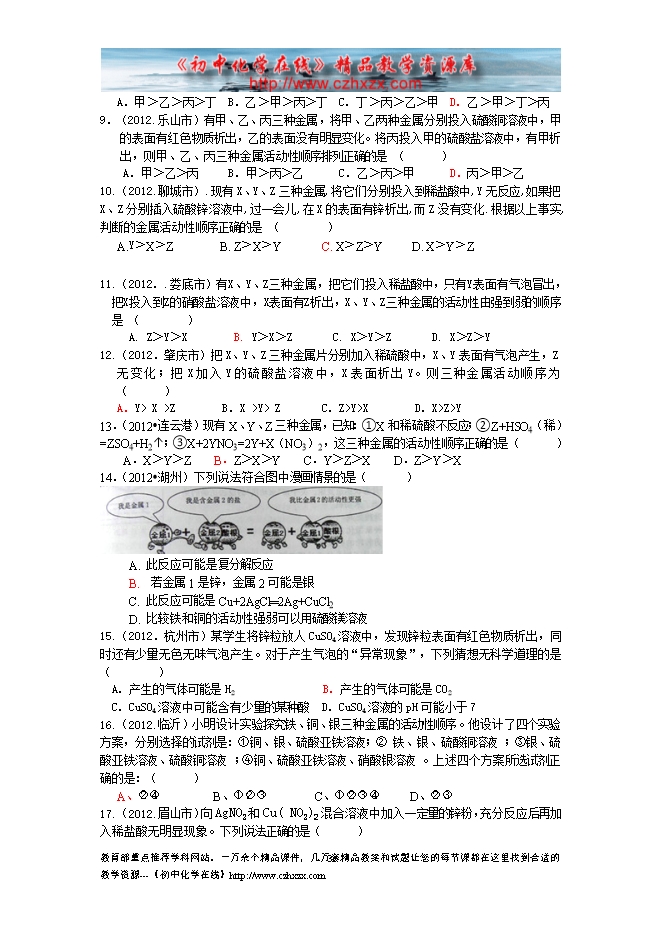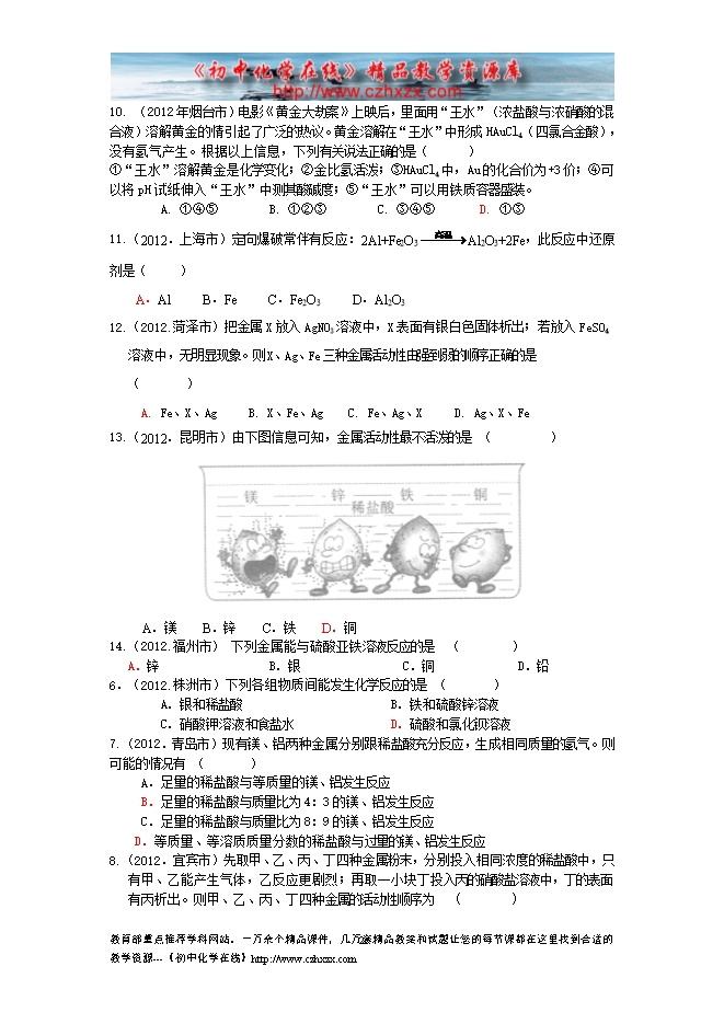 - 下一份试卷:2012年中考化学试题分类汇编—---溶液