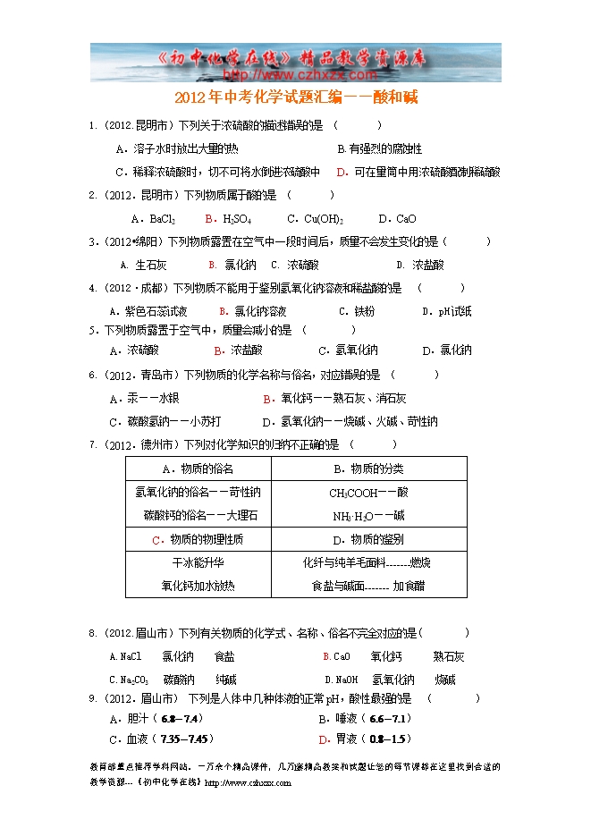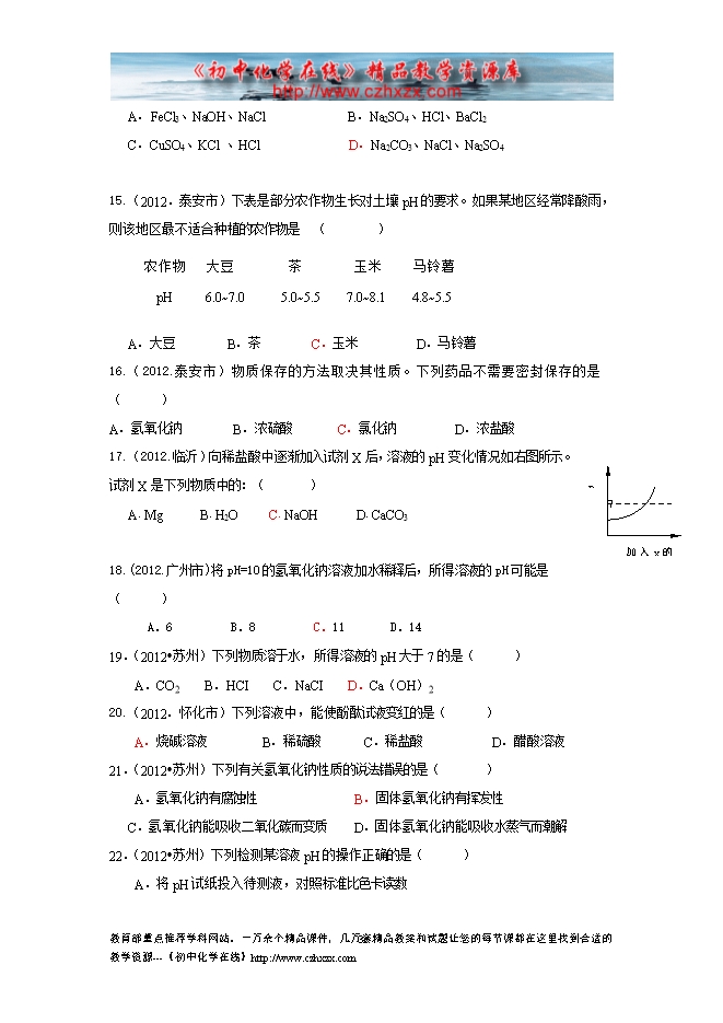 - 下一份试卷:2012年中考化学试题汇编——盐 化肥