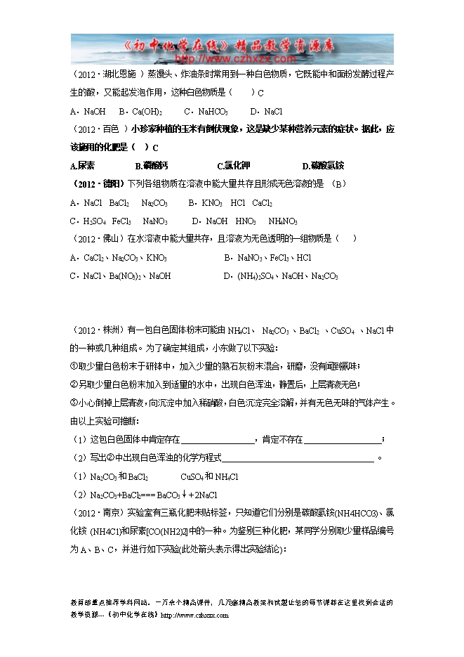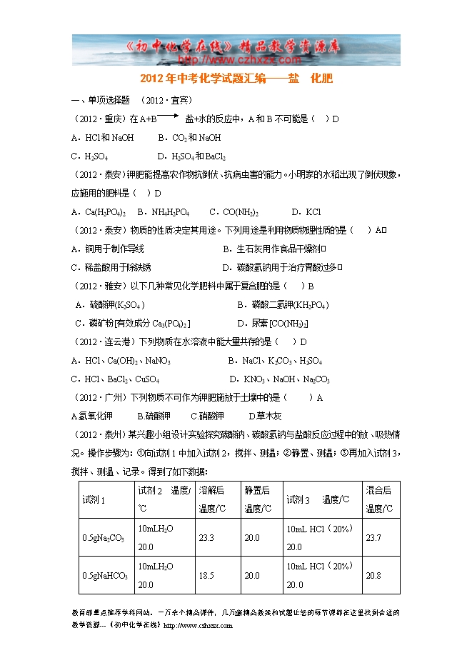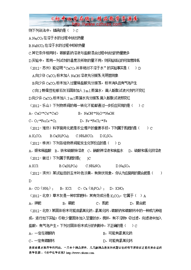 - 下一份试卷:2012年中考化学试题汇编——化学计算题