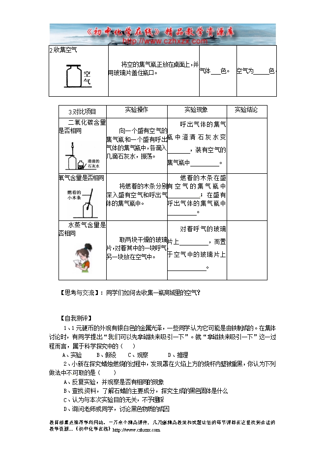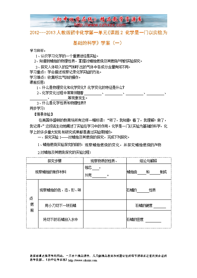 2012---2013人教版初中化学第一单元《课题2 化学是一门以实验为基础的科学》学案(一)