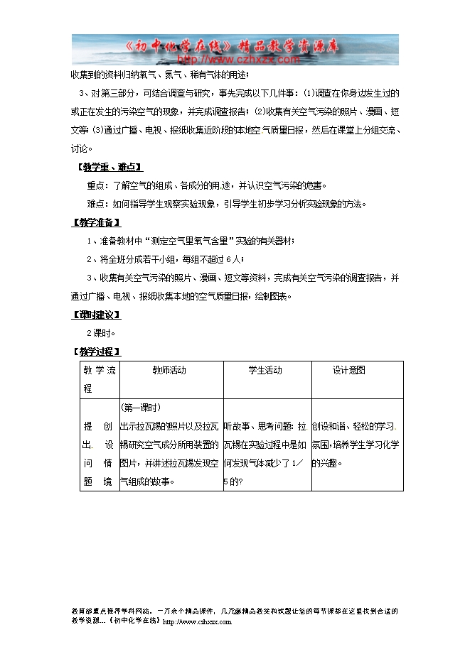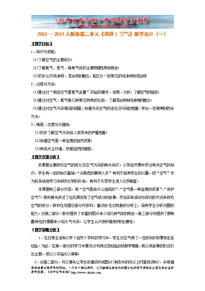 2012---2013人教版第二单元《课题1 空气》教学设计(一)