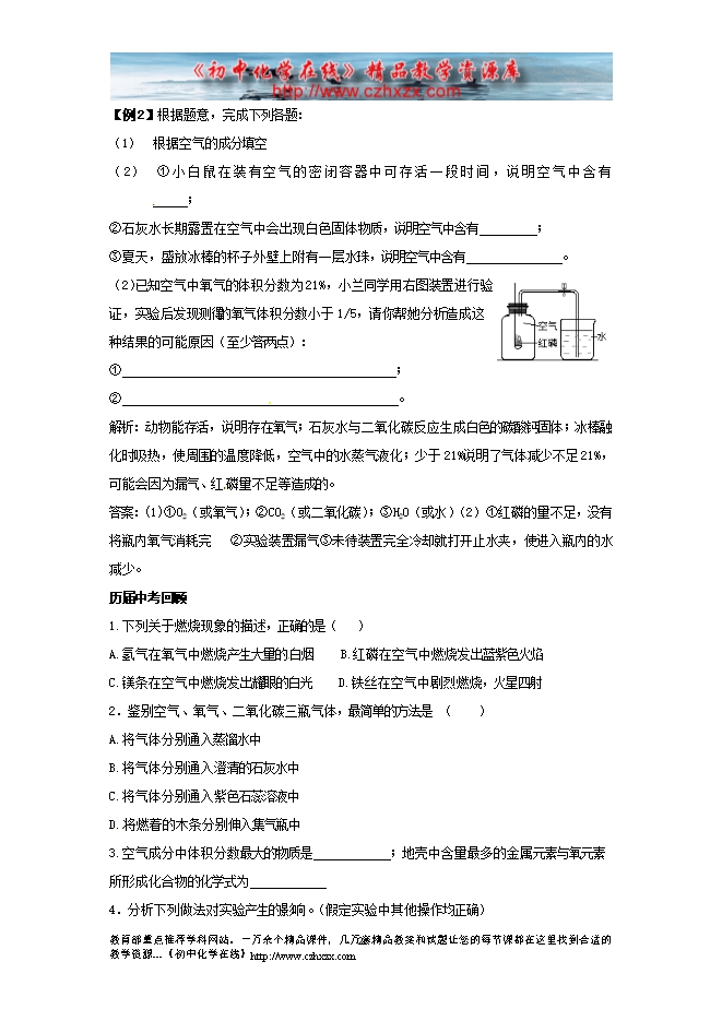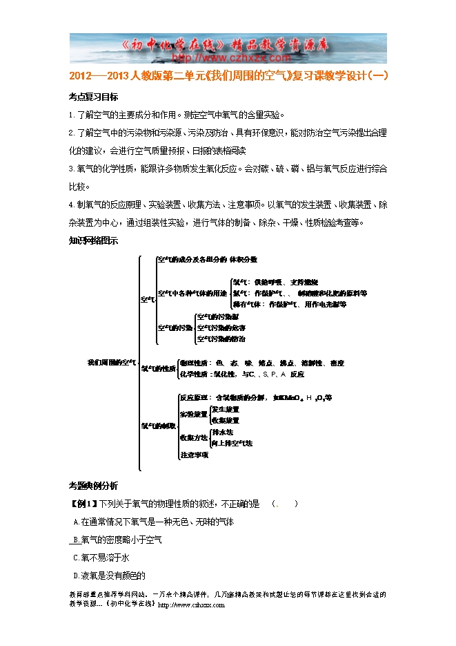 2012---2013人教版第二单元《我们周围的空气》复习课教学设计(一)