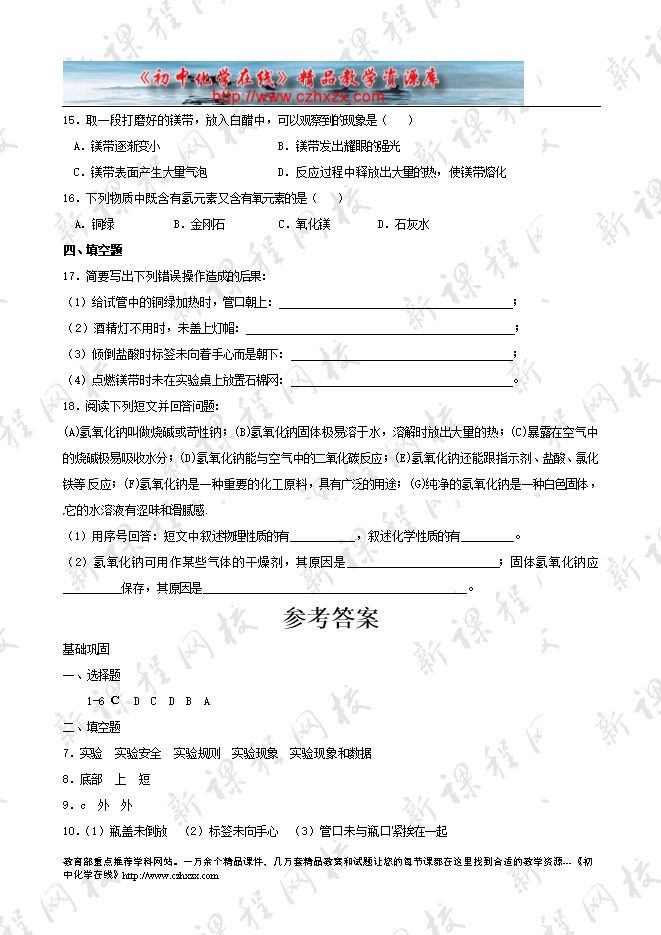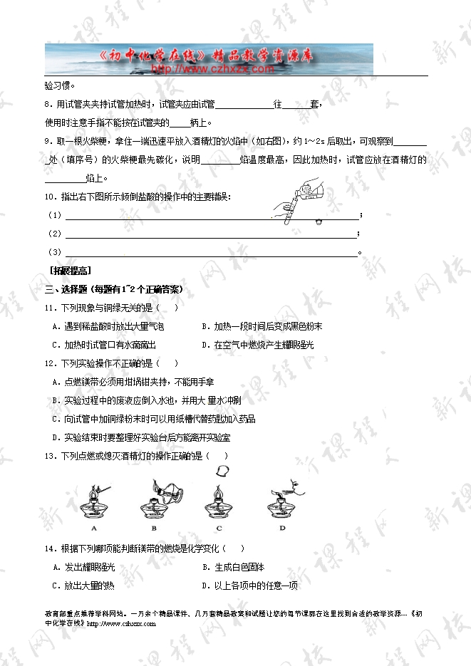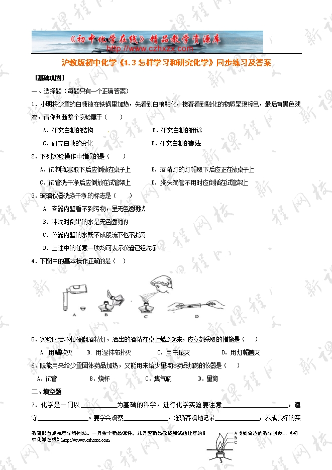 沪教版初中化学《1.3怎样学习和研究化学》同步练习及答案