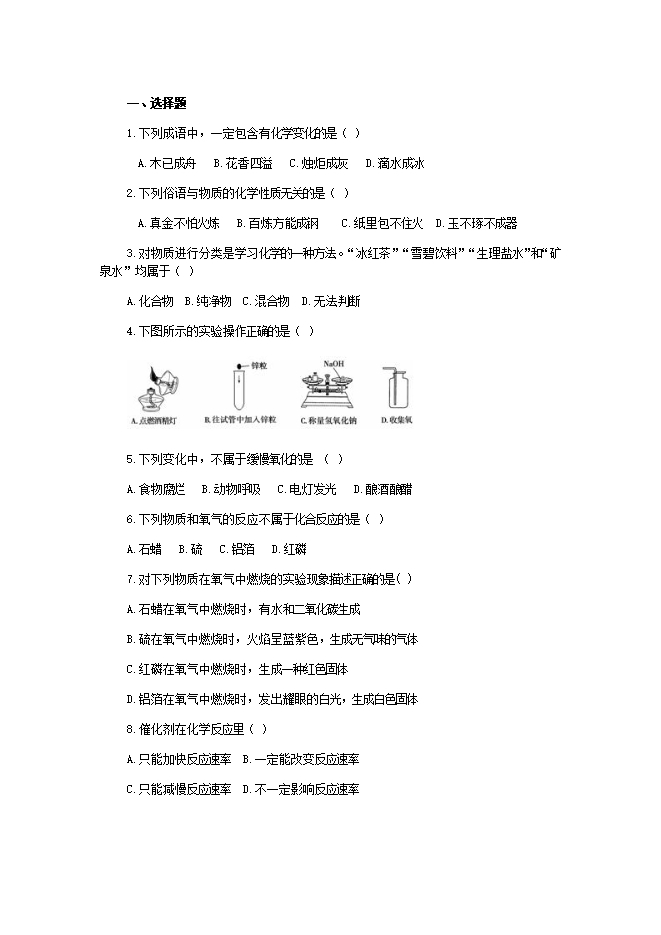 - 上一份试卷:人教版九年级《第一单元 走进化学世界》检测题