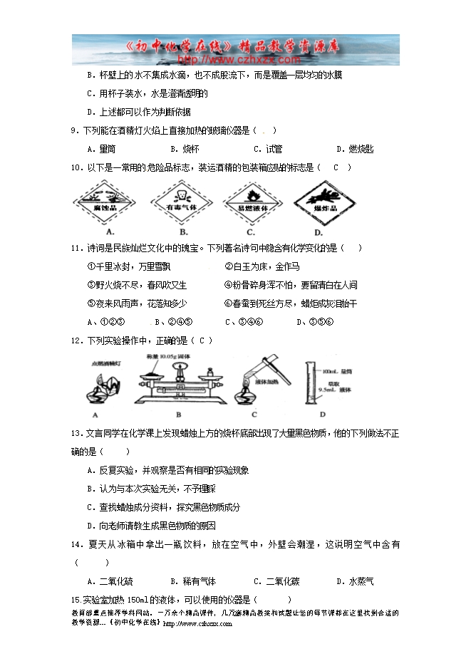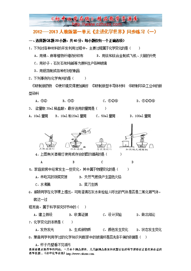 2012---2013人教版第一单元《走进化学世界》同步练习(一)