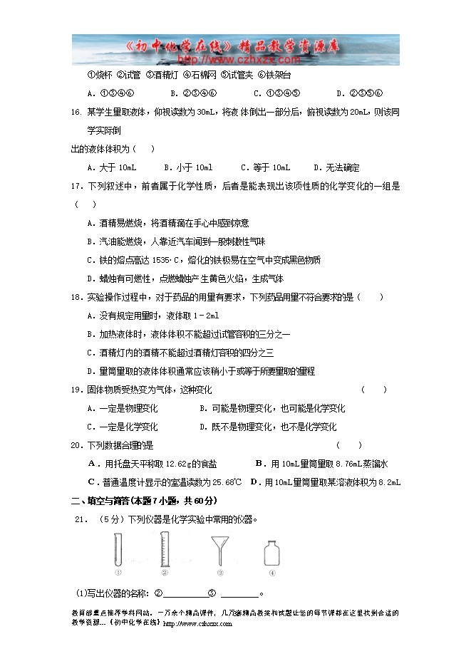 - 上一份试卷:沪教版初中化学第一章《开启化学之门》同步练习及答案