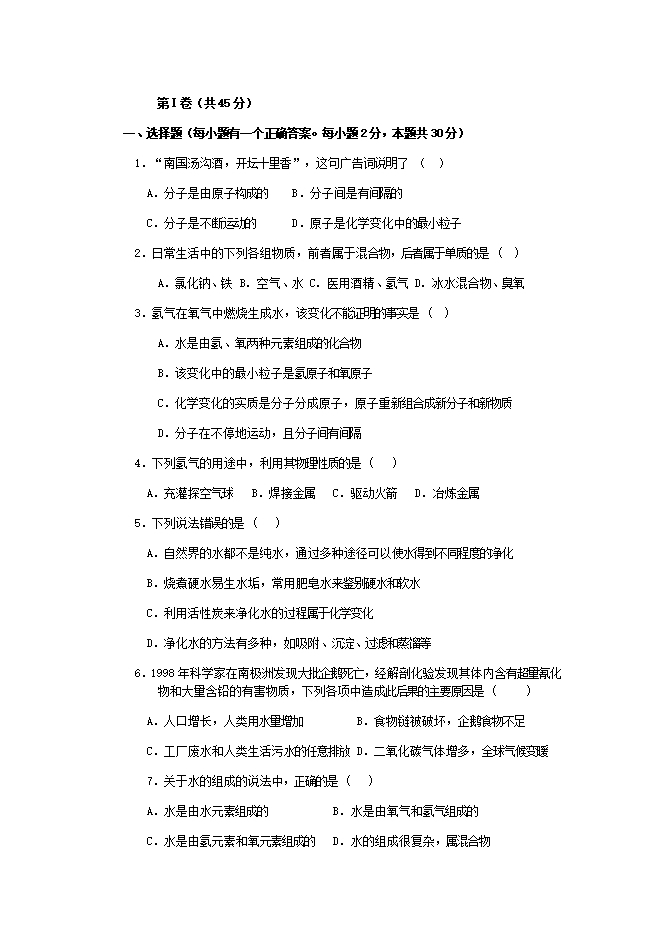 - 下一份试卷:人教版九年级《第三单元 物质构成的奥秘》检测题