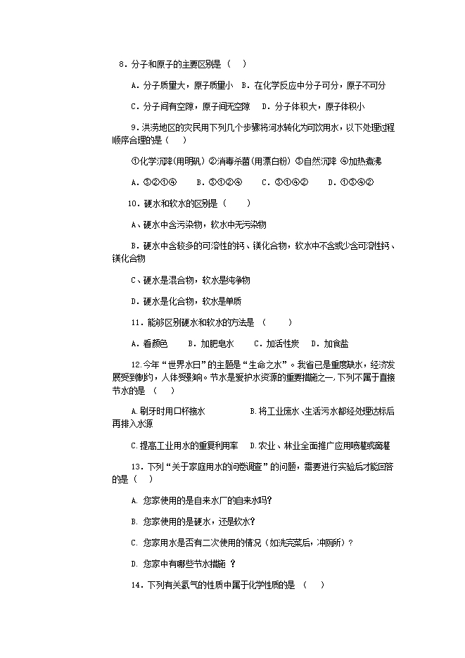 - 上一份试卷:人教版九年级《第二单元 我们周围的空气》检测题