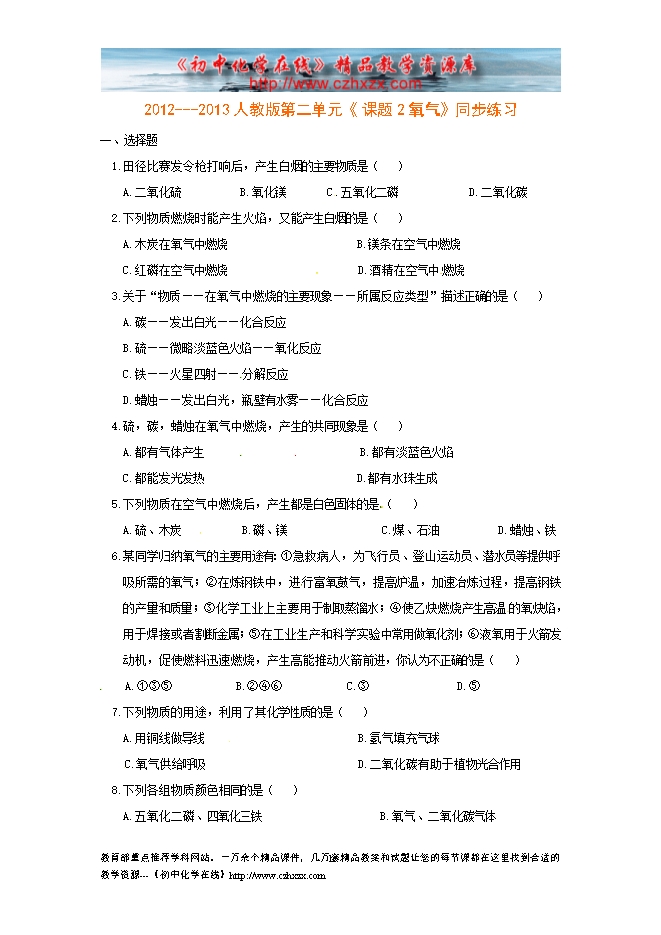 2012---2013人教版第二单元《课题2 氧气》同步练习