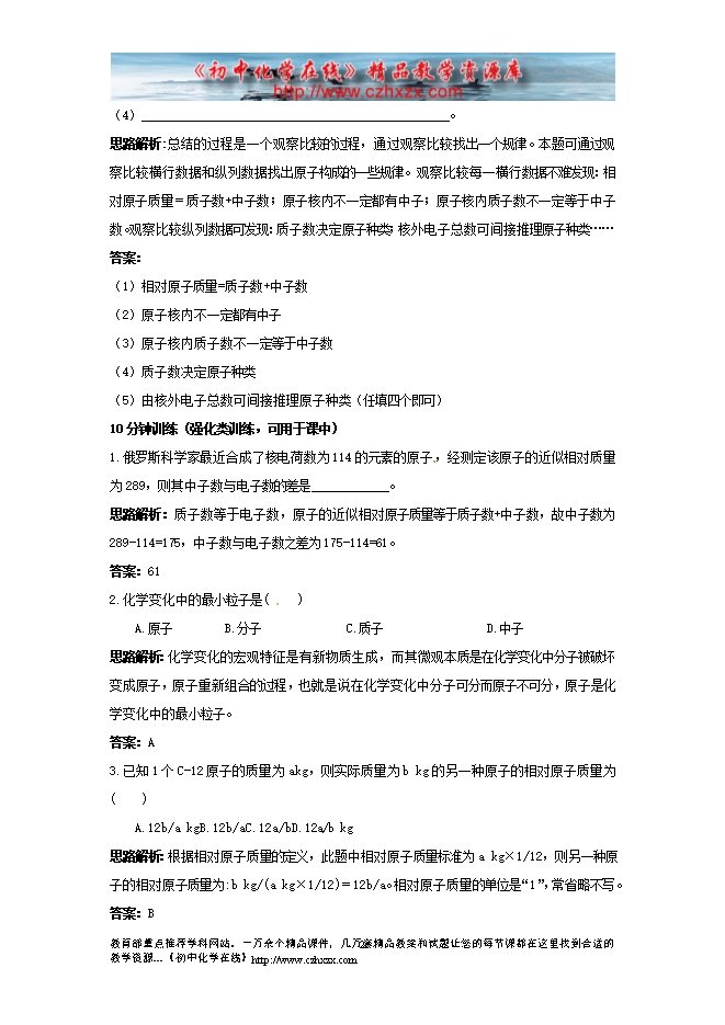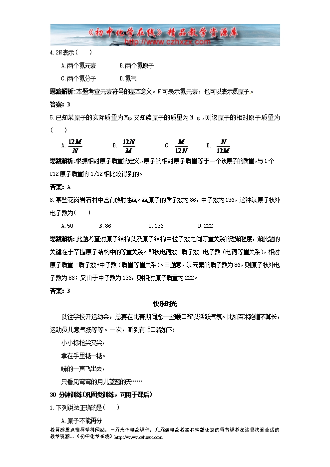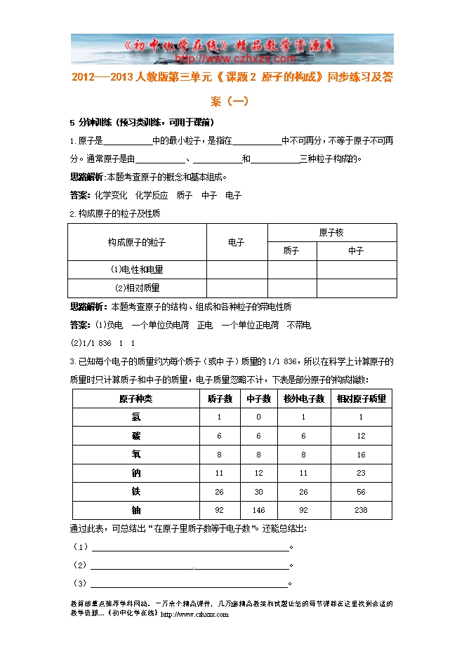 2012---2013人教版第三单元《 课题2 原子的构成》同步练习及答案(一)