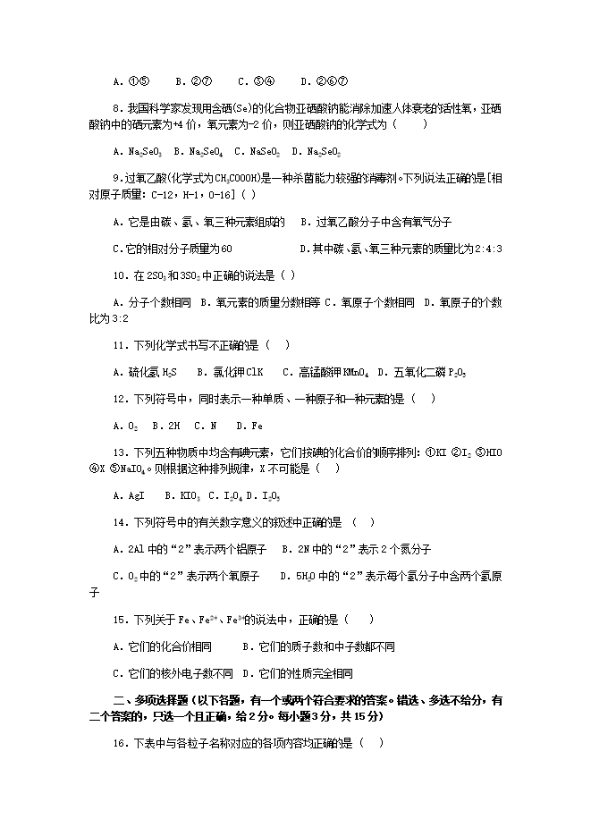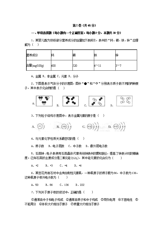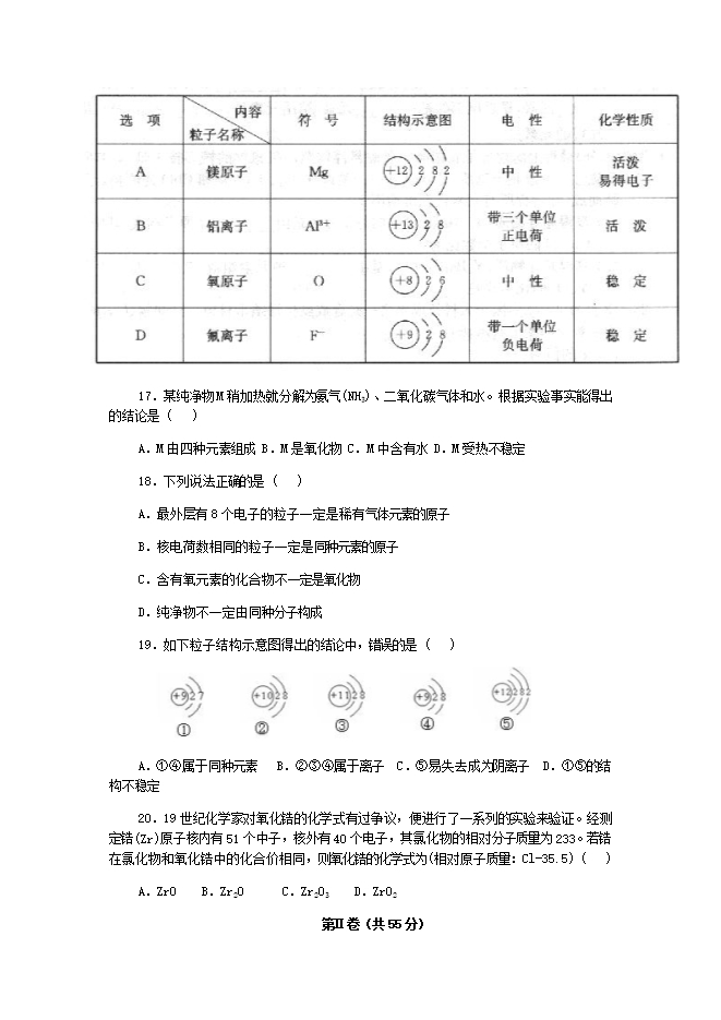 人教版九年级《第三单元 物质构成的奥秘》检测题