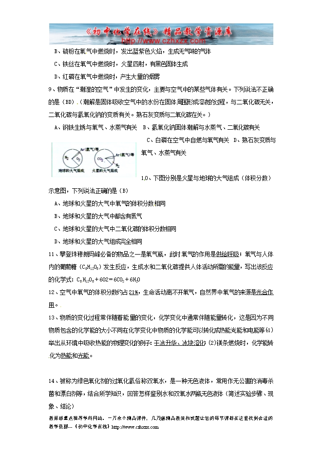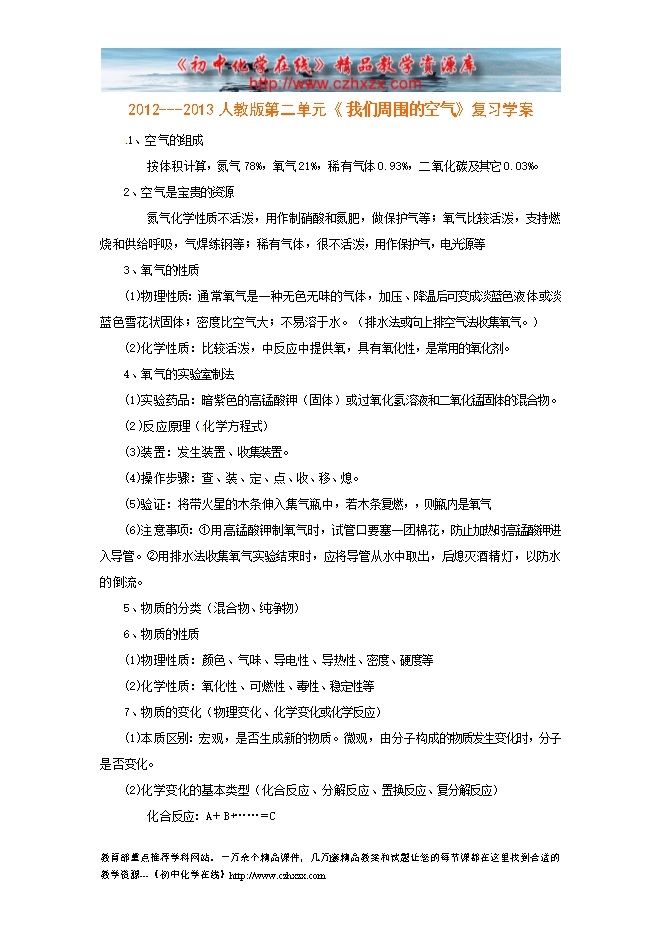 2012---2013人教版第二单元《 我们周围的空气》复习学案