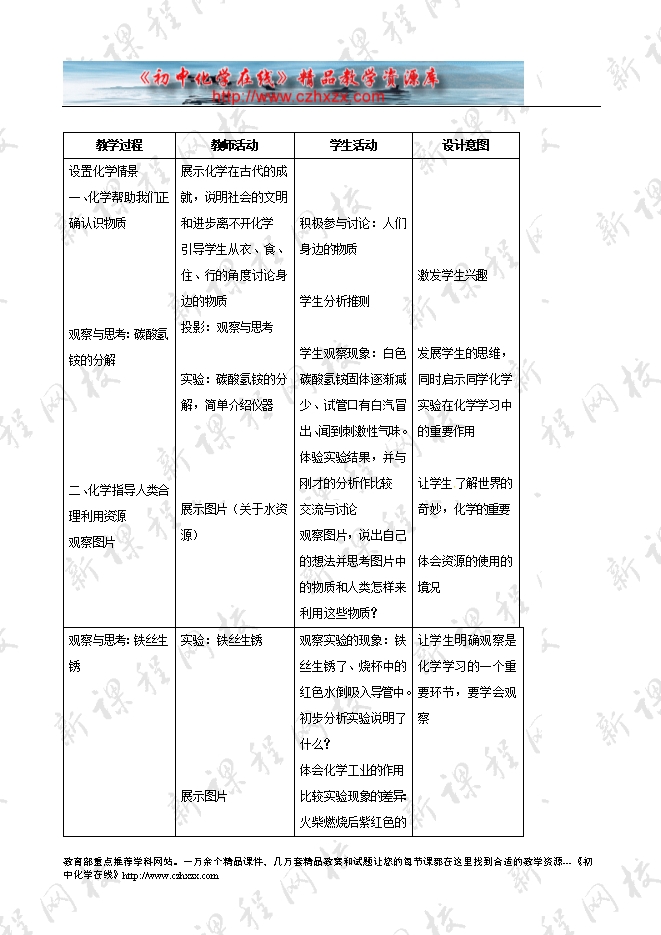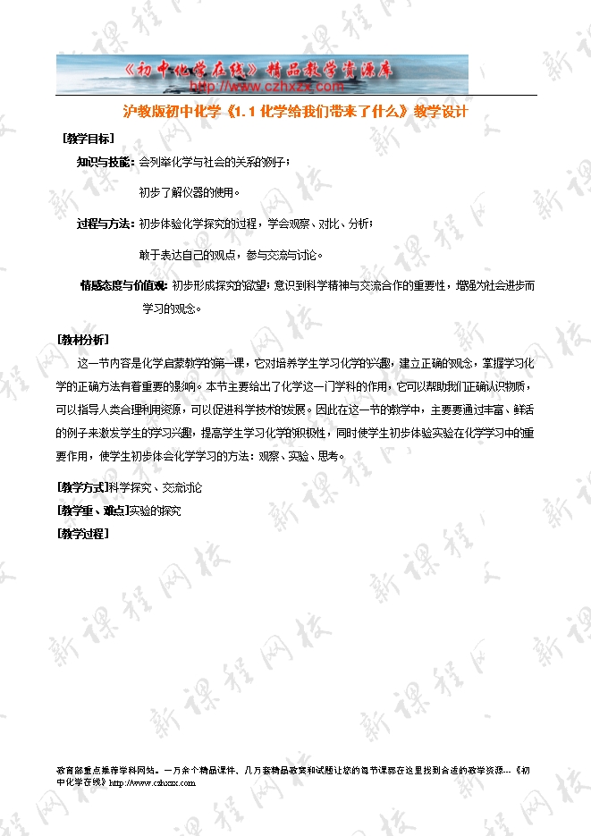 2012-2013沪教版初中化学《1.1化学给我们带来什么》教学设计