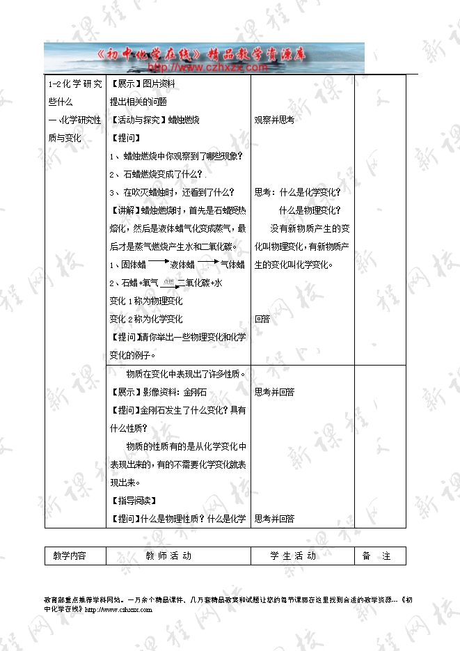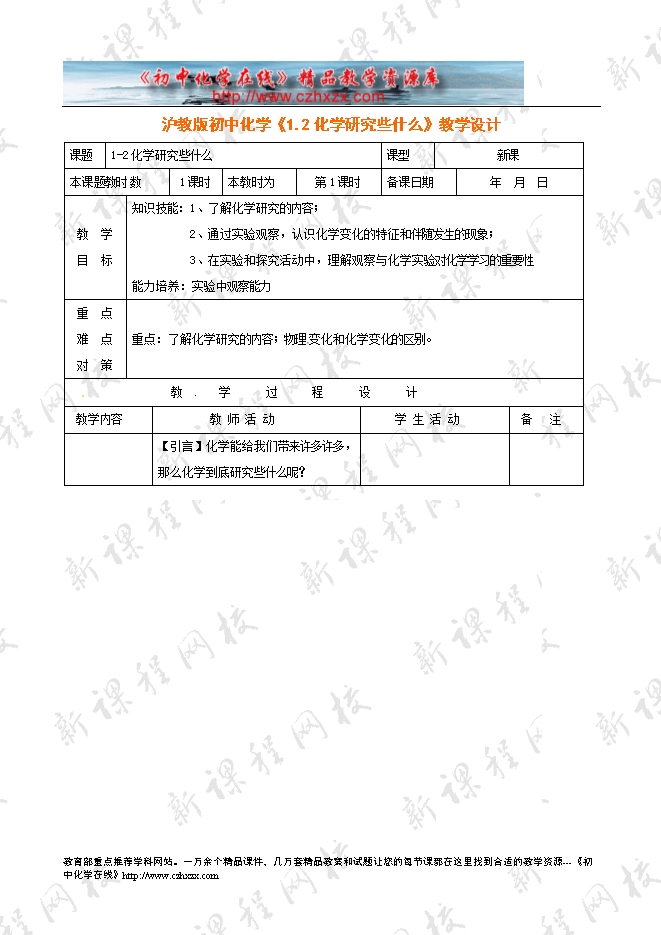 2012-2013沪教版初中化学《1.2化学研究些什么》教学设计