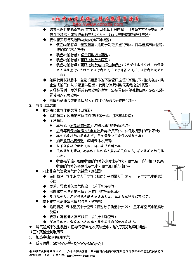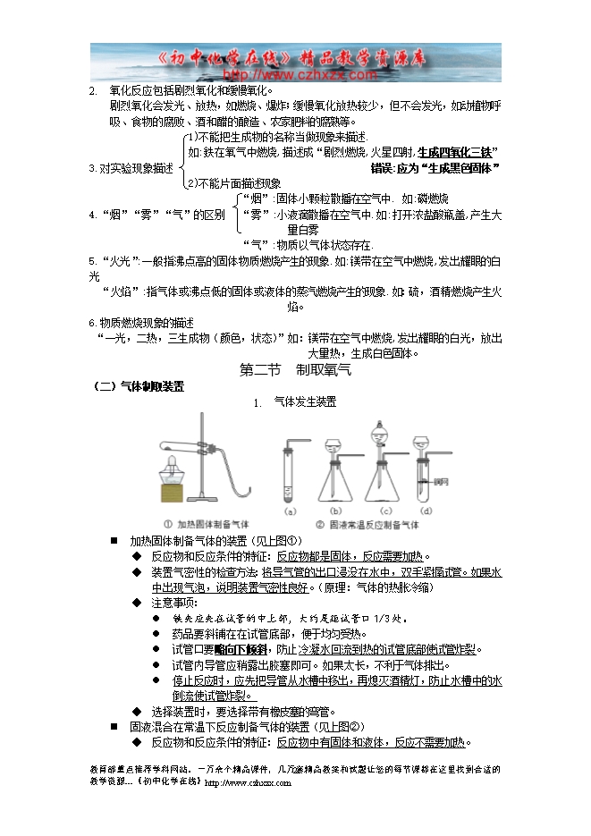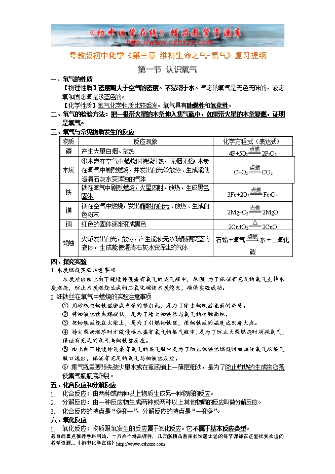 粤教版初中化学《第三章 维持生命之气-氧气》复习提纲