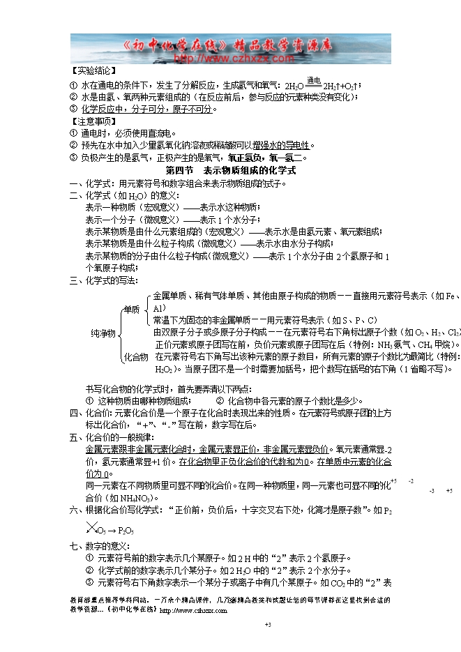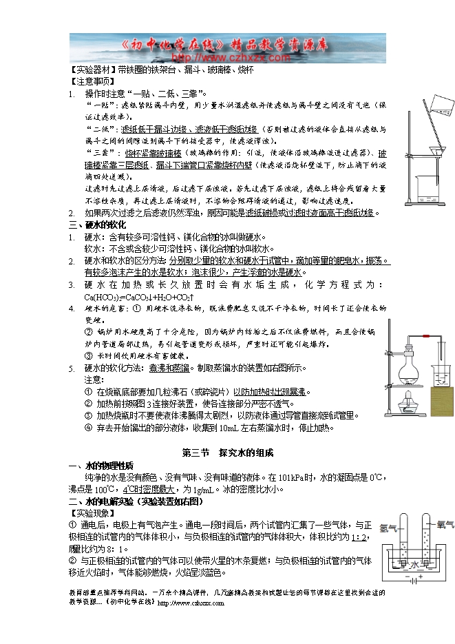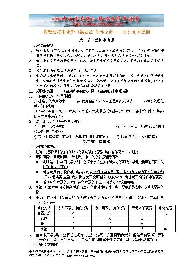 粤教版初中化学《第四章 生命之源——水》复习提纲