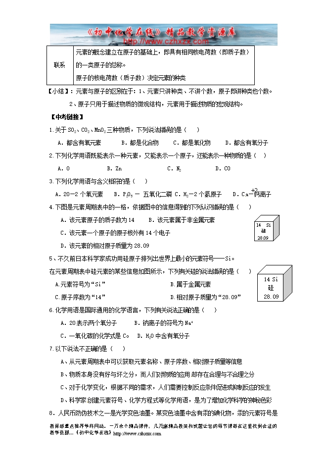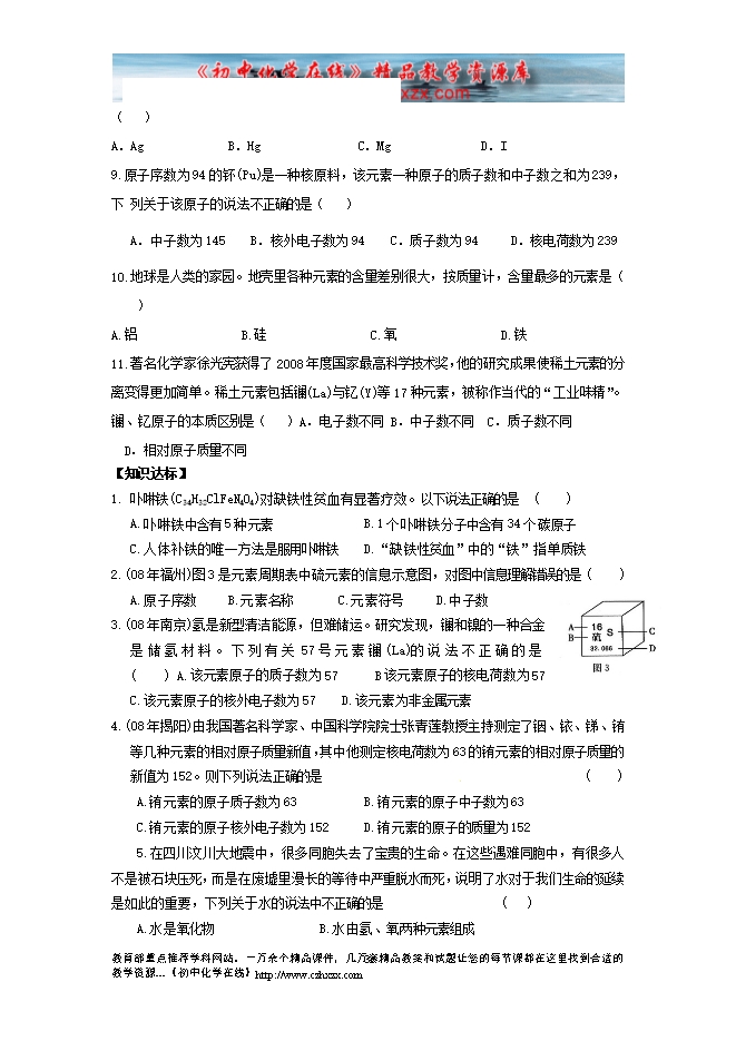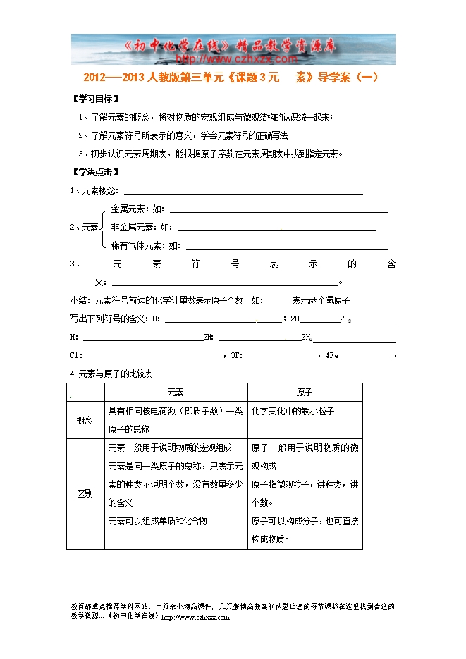 2012---2013人教版第三单元《课题3 元素》导学案(一)