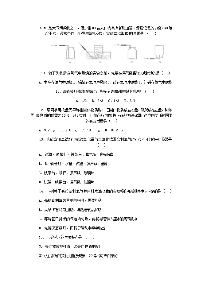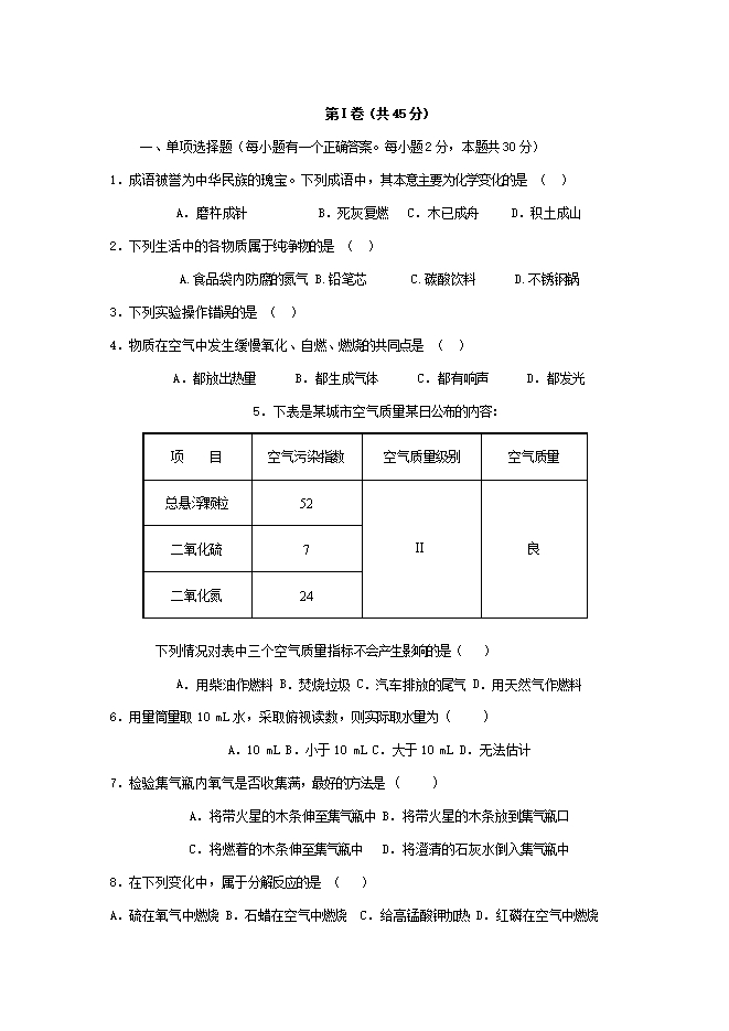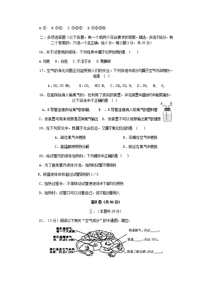 人教版九年级第一、二单元《走进化学世界 我们周围的空气》综合试卷