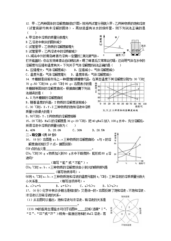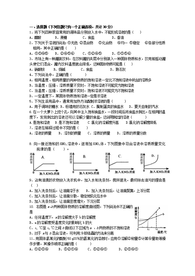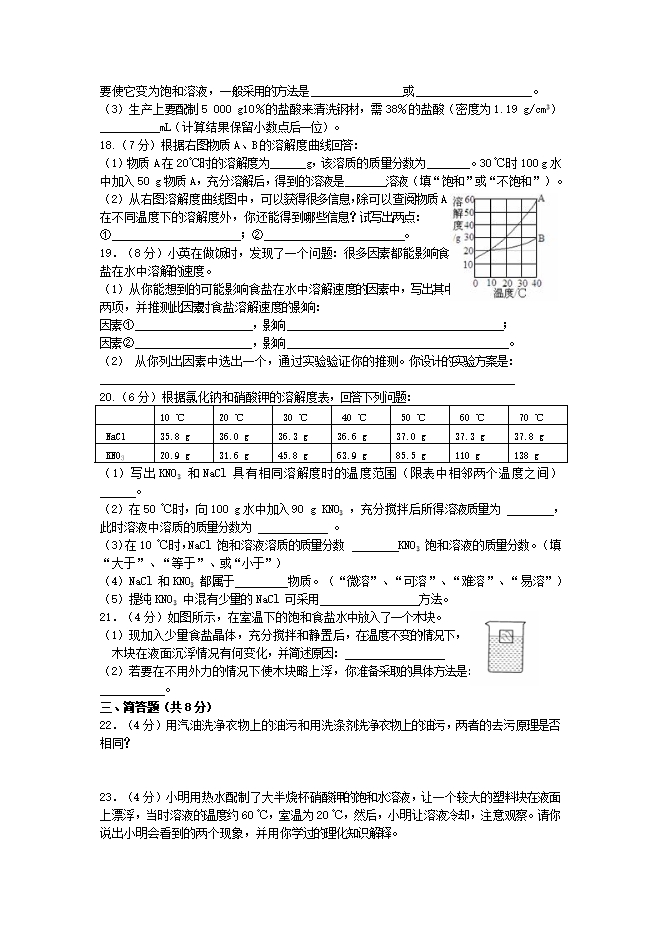 - 下一份试卷:人教版九年级《第九单元 溶液》单元测试卷