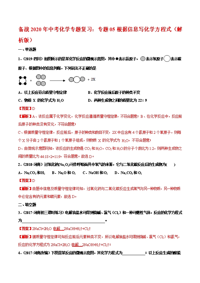 备战2020年中考化学专题复习:专题05根据信息写化学方程式(解析版)