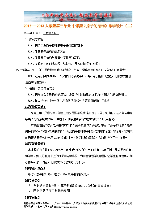 2012---2013人教版第三单元《课题2 原子的结构》教学设计(二)