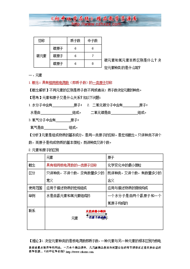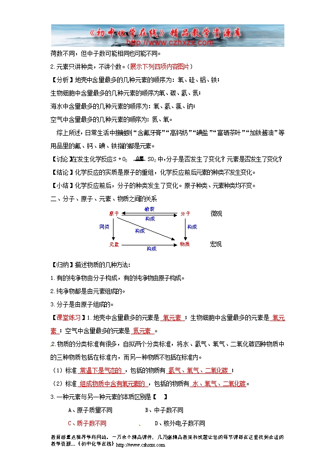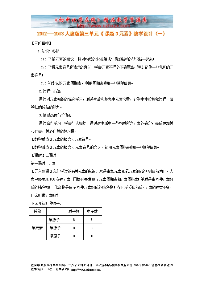 2012---2013人教版第三单元《课题3 元素》教学设计(一)