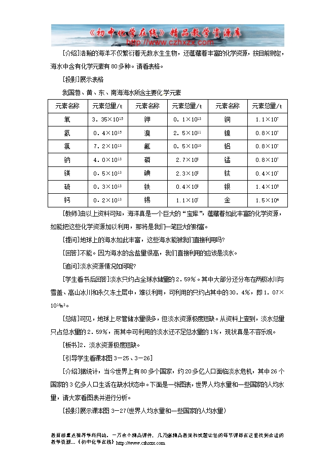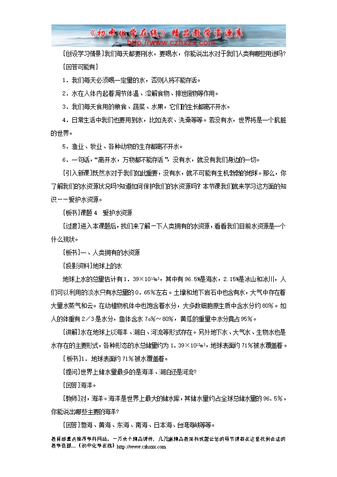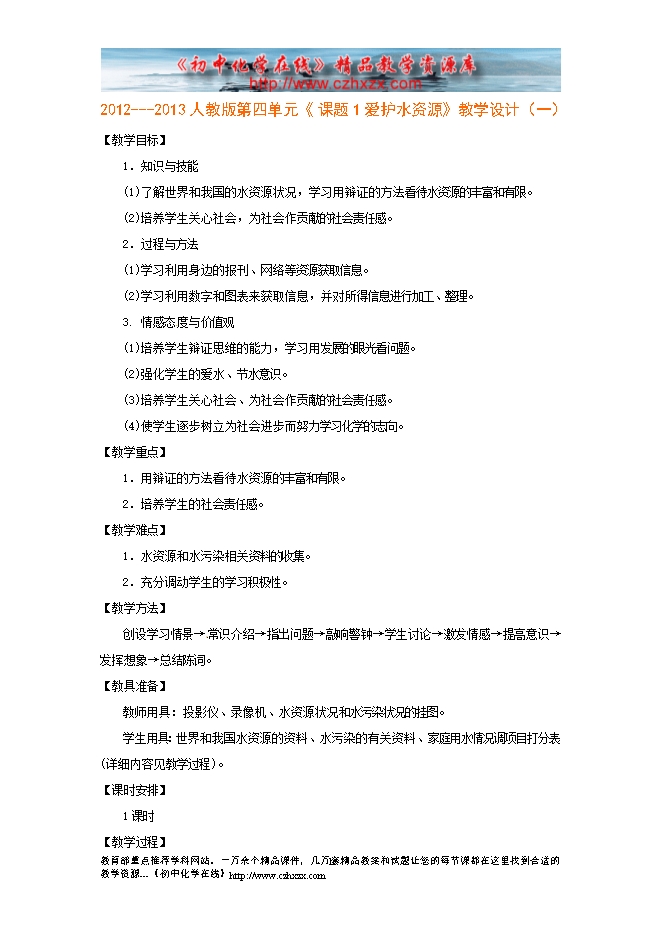 2012---2013人教版第四单元《课题1 爱护水资源》教学设计(一)
