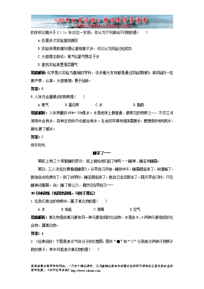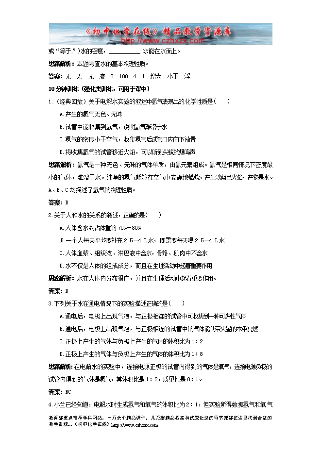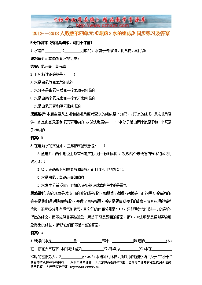 2012---2013人教版第四单元《课题3 水的组成》同步练习及答案