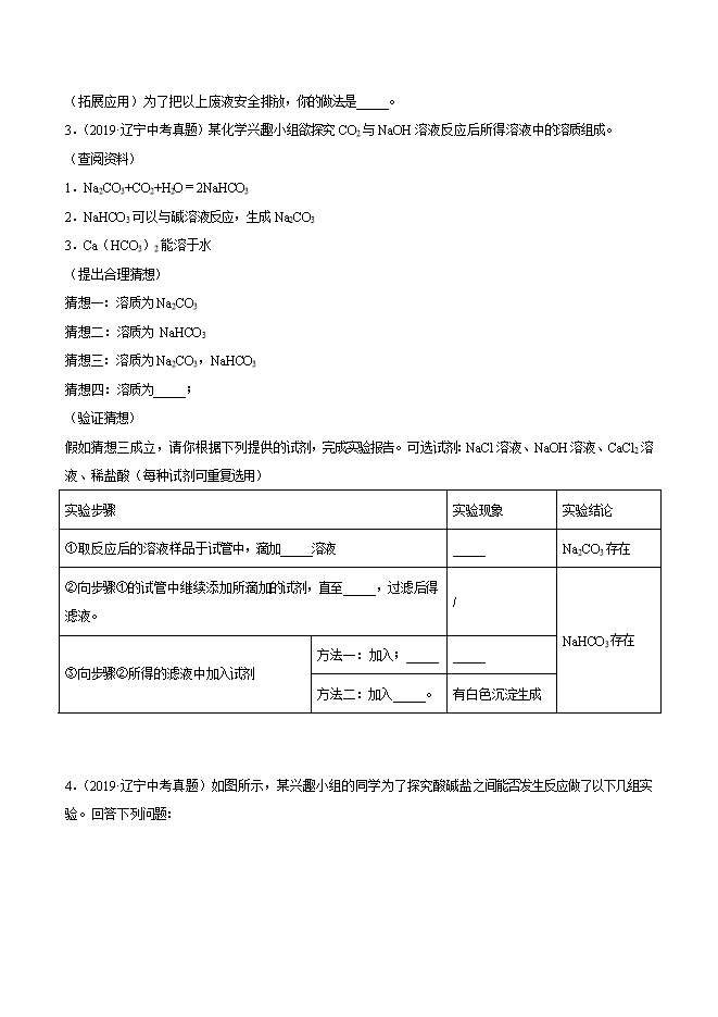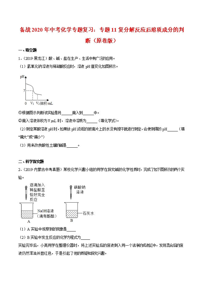 备战2020年中考化学专题复习:专题11复分解反应后溶质成分的判断(原卷版)