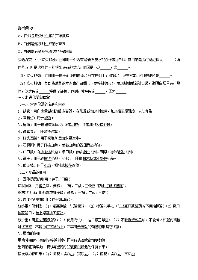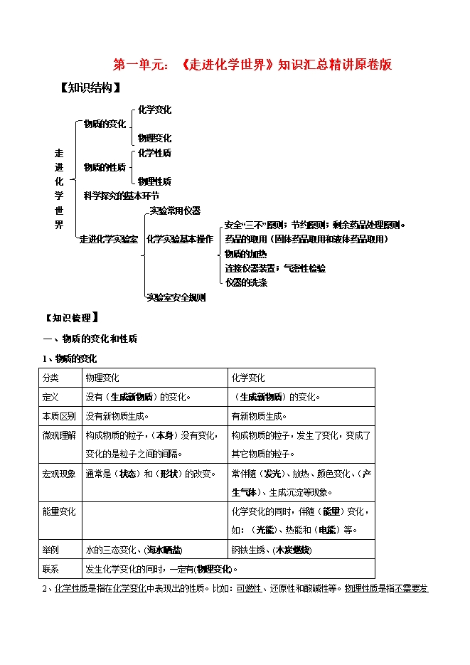 【2020年中考复习】人教版九年级化学上册《第一单元 走进化学世界》知识点汇总精讲(原卷版)