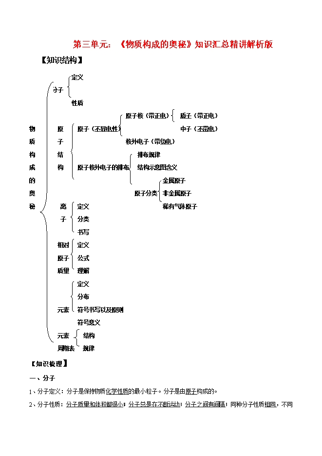 【2020年中考复习】人教版九年级化学上册《第三单元 物质构成的奥秘》知识点汇总精讲(解析版)
