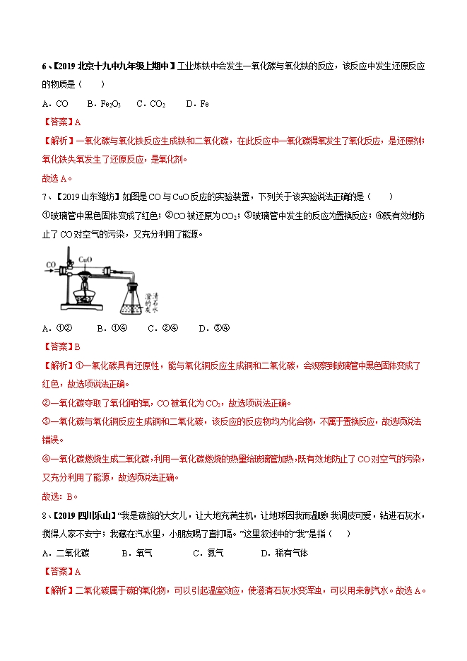 【2020年中考复习】人教版九年级化学上册《第六单元 碳和碳的氧化物》知识点汇总精练(解析版)