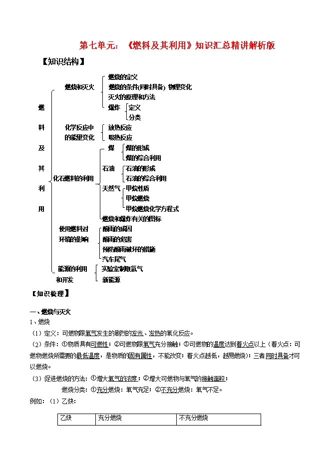 【2020年中考复习】人教版九年级化学上册《第七单元 燃料及其利用》知识点汇总精讲(解析版)