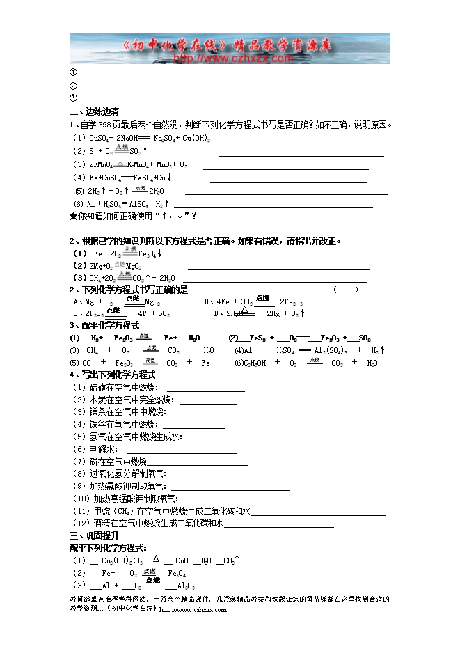 2012---2013人教版第五单元《课题2 如何正确的书写化学方程式》复习学案(一)