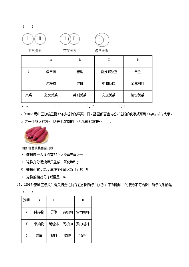 【内容简介】方城烩面营养美味。做烩面所用下列食材中富含维生素的是( )A.羊肉B.青菜C.芝麻油D.小麦粉5.(2019•大连模拟)下列说法不正确的是( )A.有机物一定含碳元素,但含碳的化合物不一定属于有机物B.二氧化碳、碳酸钙中都含有碳元素,所以它们都是有机物C.大多数有机物易燃D.甲烷是最简单的有机物6.(2019•黄浦区二模)关于甲烷(CH4)的说法正确的是( )A.类别:氧化物B.物理性质:常温时呈液态C.化学性质:助燃性D.主要用途:用作燃料7.(2019•西湖区校级模拟)某同学因缺乏维生素A而患夜盲症,有关维生素A的叙述,正确的是( )A.是简单的无机物B.是构成细胞的主要原料C.能为人体提供能量D.多吃胡萝卜能缓解病情......