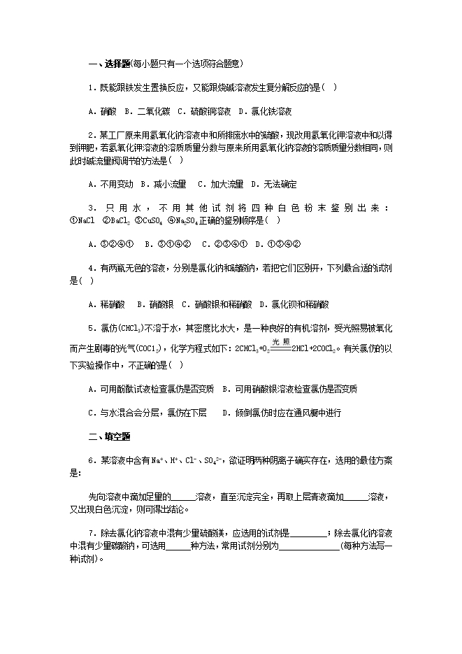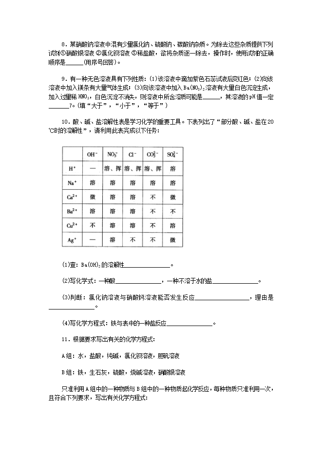 人教版九年级《第十一单元 盐 化肥》单元测试卷2