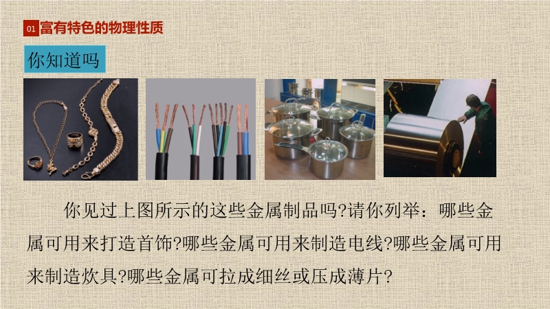 2020年春科粤版九年级化学下册《专题6.1 金属材料的物理特性》同步教学课件(共30张PPT)