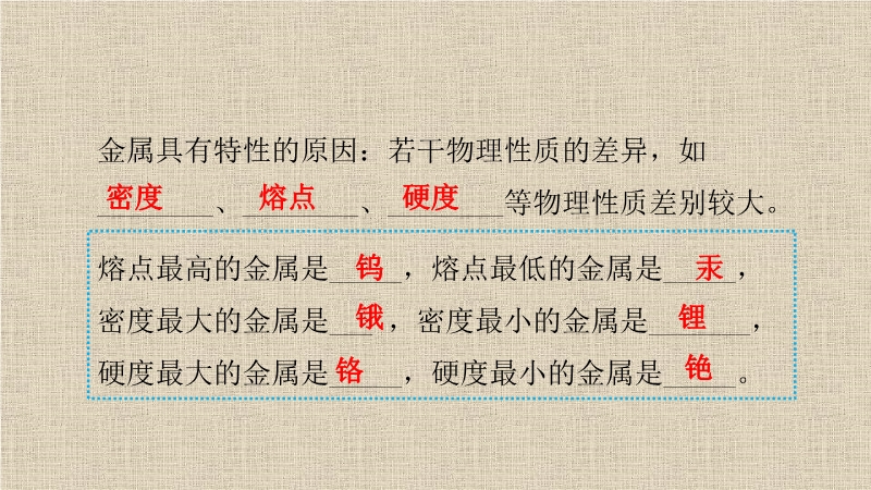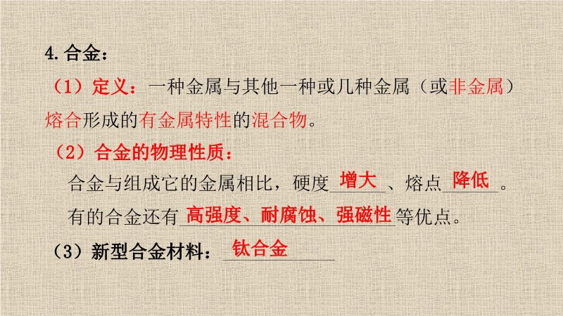 【内容简介】 “真金不怕火炼”说明金既使在高温下也不与氧气反应。由此可见,并不是所有金属都与氧气反应,除金外,银、铂等金属也不能与氧气反应。铁丝在常温下的反应:常温下,铁不易于氧气反应总结:大多数金属能与氧气反应,但反应的难易程度和剧烈程度不同,其中活动性顺序比较为镁、铝>铁、铜> 金、银注意:实验前要用砂纸打磨铝丝、铁钉、铜丝表面的氧化膜,然后再分别放入几种化合物的溶液中。