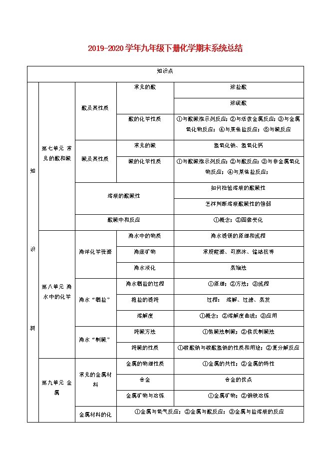 2020年春鲁教版九年级化学下册期末全册知识点总结(复习学案原卷版)