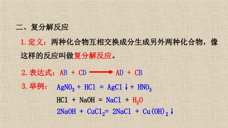 【内容简介】1.复分解反应定义:两种化合物互相交换成分生成另外两种化合物,像这样的反应叫做复分解反应。所以,食盐是盐,是正确的。因为食盐是由Na+ 和Cl- 构成的化合物;盐就是食盐,这种说法是错误的。因为盐是由金属离子和酸根离子构成的一类化合物。例如:Na2CO3、KCl等都是盐。 想一想,我们生活中常见的盐有哪些?纯碱用途广泛。在过去,其生产技术长期把持在西方发达国家手中。生于福建农民家庭的侯德榜(1890~1974)1921年从美国获博士学位后回国创业。1926年他主持生产出高纯度的“红三角牌”纯碱,获当年美国费城万国博览会全奖,为中国民族化工赢得了声誉,结束了列强垄断纯碱生产的局面。抗日战争时期,在艰苦条件下,候德榜成功摸索和改进西方制碱方法,发明将制碱与制氨结合起来的联合制碱法。此法提高了原料利用率,降低了成本,被世界上公认,称之为“侯氏联合制碱法”。[注意] 通常情况下,大多数盐都是固体,并且许多盐有美丽的颜色,如硫酸亚铁显________,硫酸铜晶体显________,高锰酸钾显________等不同的盐可以由对应的酸和碱发生中和反应得到,那么你知道下列各种盐分别是由哪种酸和碱得到的吗?......