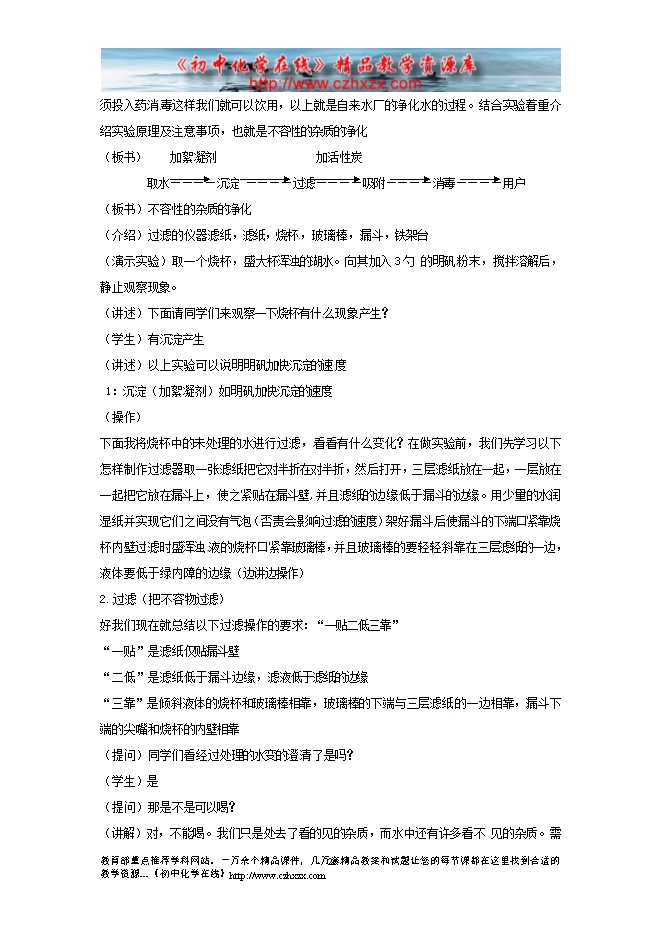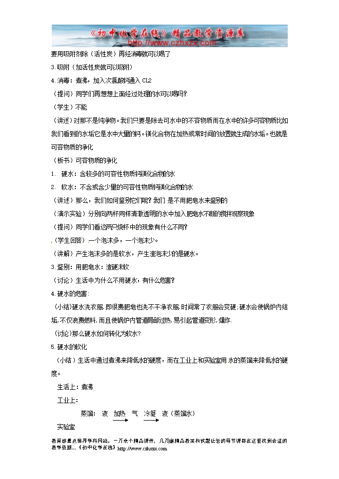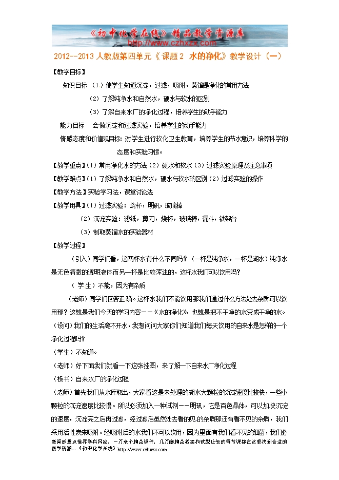 2012--2013人教版第四单元《 课题2 水的净化》教学设计(一)