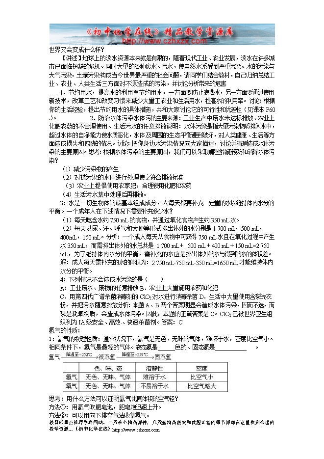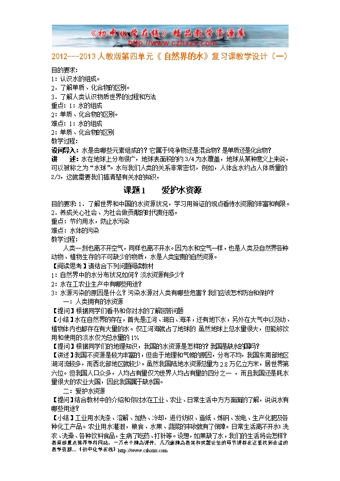2012---2013人教版第四单元《自然界的水》复习课教学设计(一)