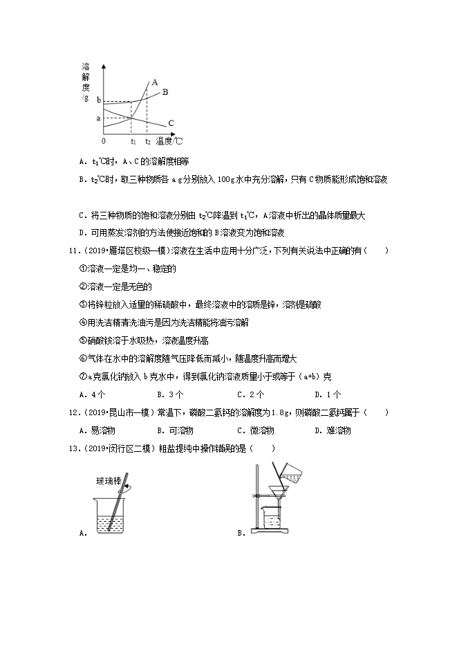 2020届科粤版九年级化学《第7章 溶液》同步单元双基双测“AB”卷(B卷)(word版无答案)