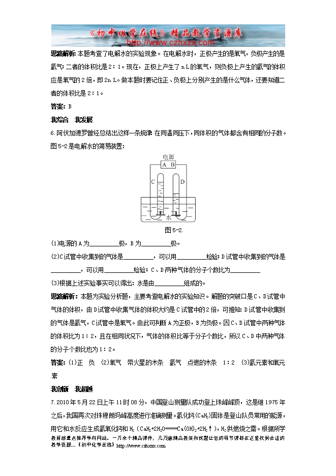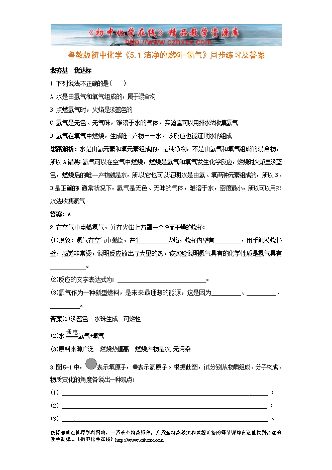 粤教版初中化学《5.1 洁净的燃料-氢气》同步练习及答案