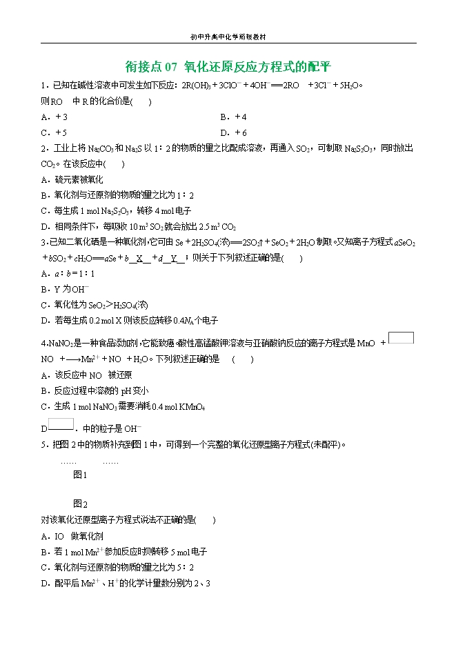 初中升高中化学衔接教材练习卷:衔接点07 氧化还原反应方程式的配平(解析版和原卷版)