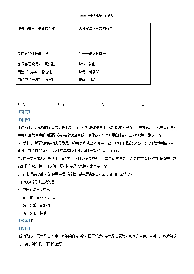 甘肃省天水市2020年初中毕业学业统一考试化学试卷(解析版)