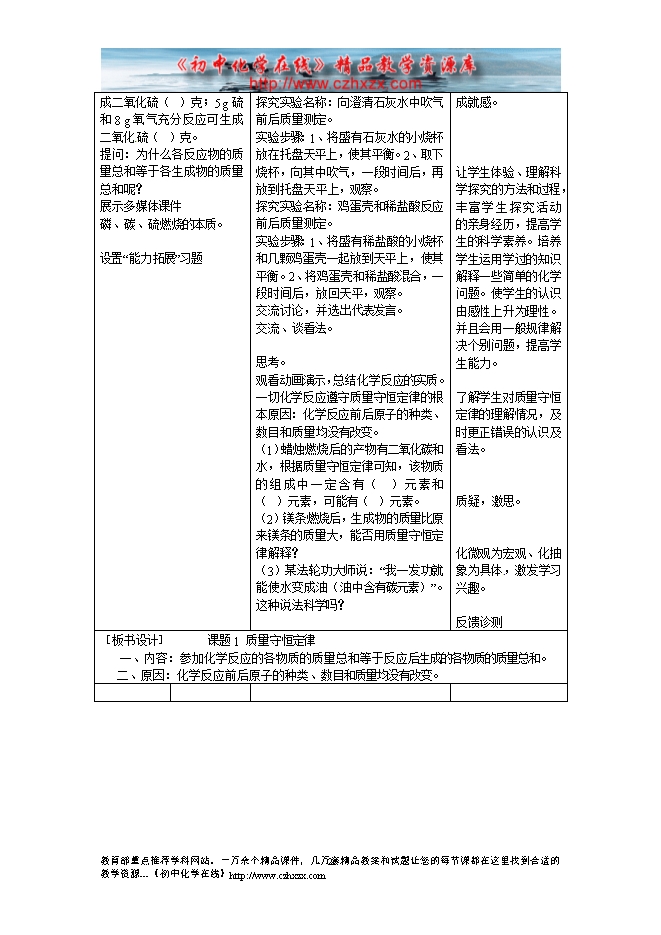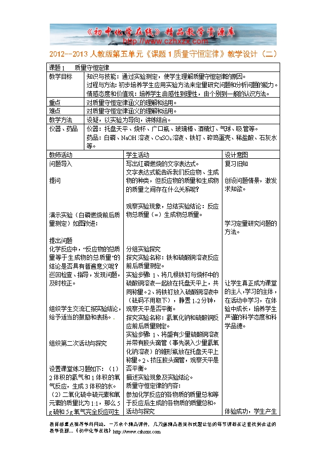 2012--2013人教版第五单元《课题1质量守恒定律》教学设计(二)