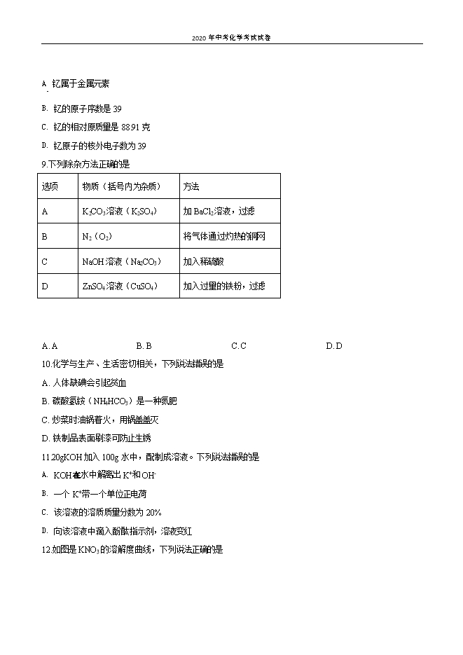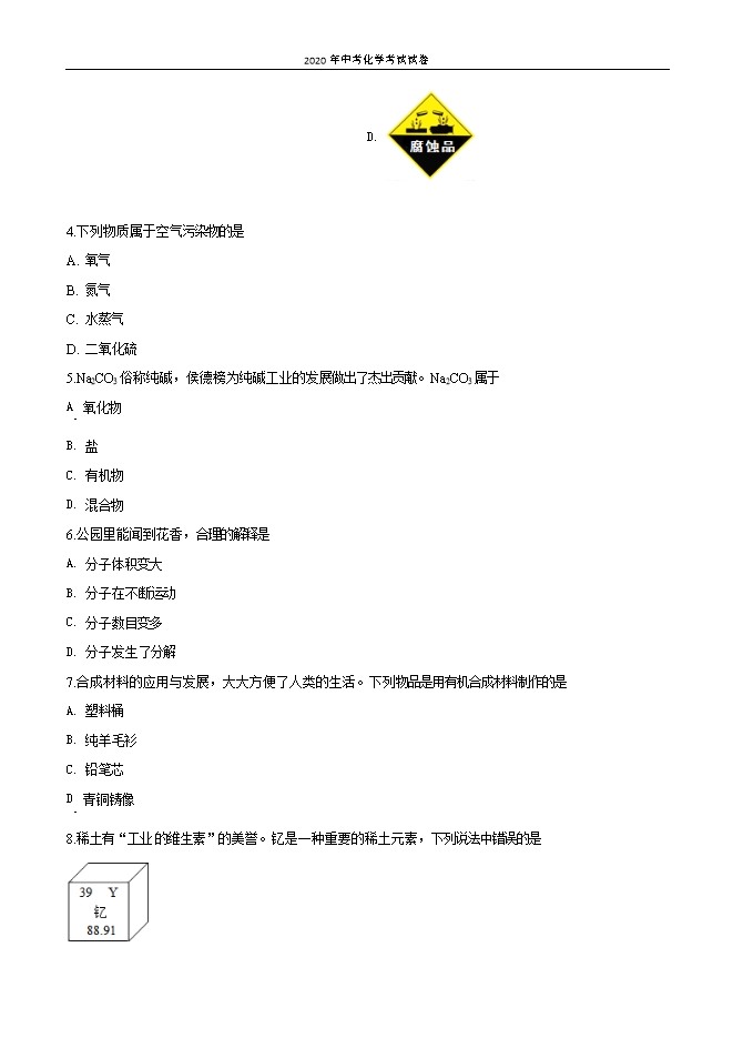 广东省2020年初中毕业学业统一考试化学试卷(原卷版)