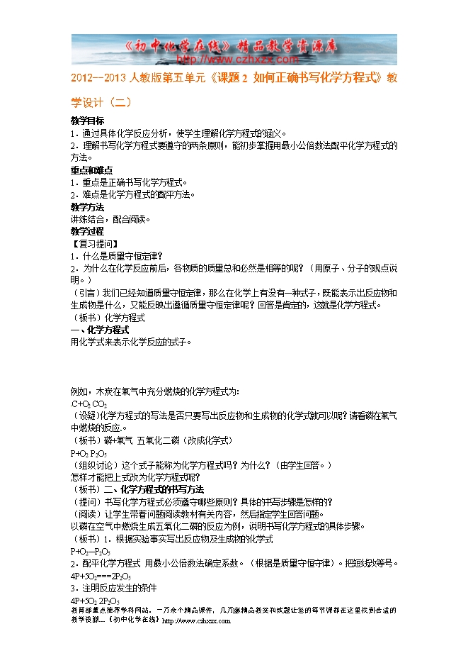 2012--2013人教版第五单元《课题2 如何正确书写化学方程式》教学设计(二)