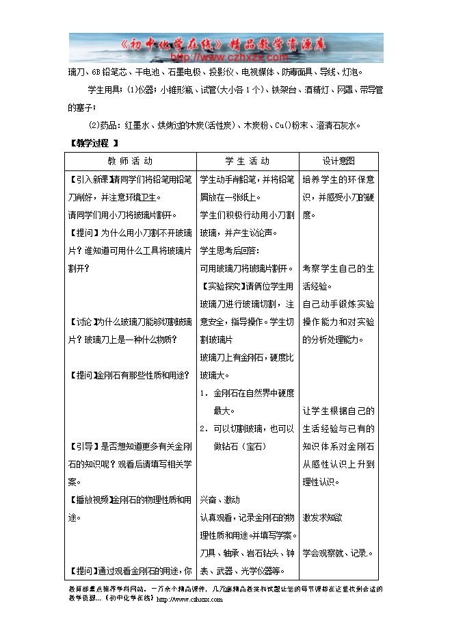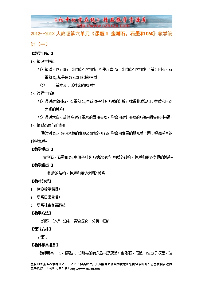 2012--2013人教版第六单元《课题1 金刚石、石墨和C60》教学设计(一)